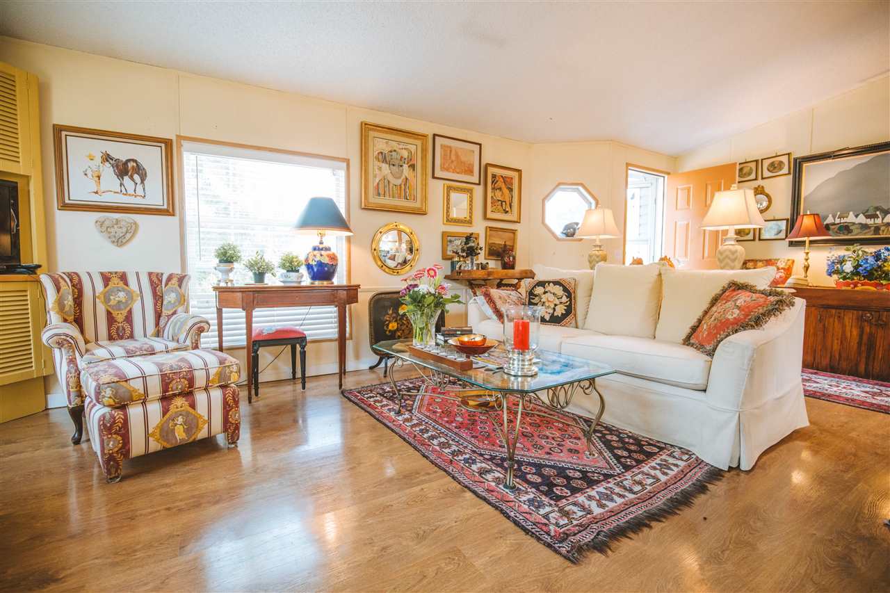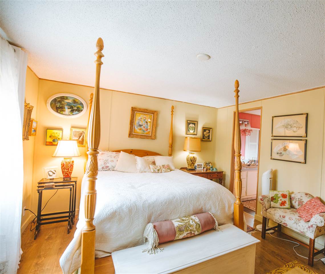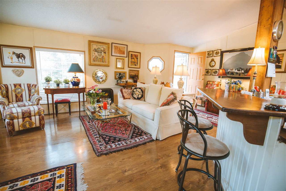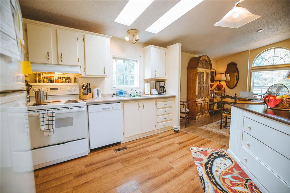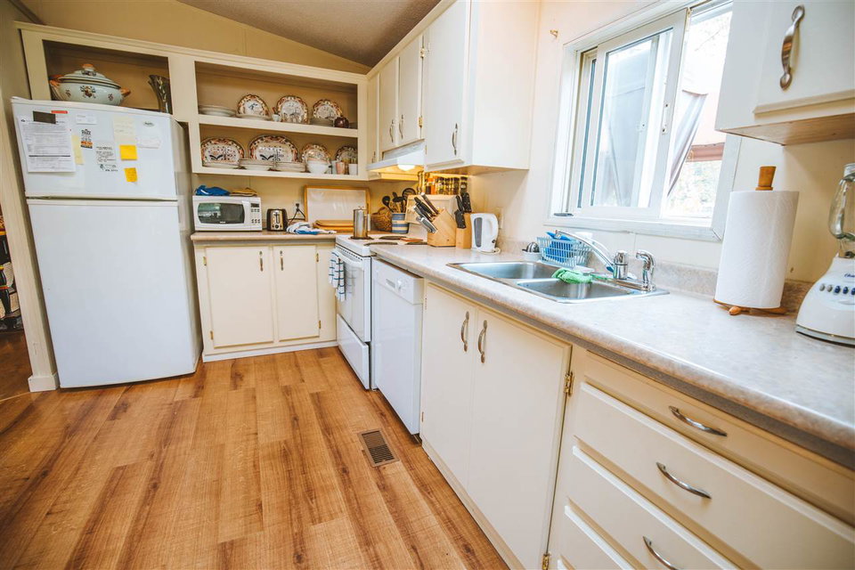 The best home and lot in the Park! This home is over 1300 sf, 3 beds, 2 full Baths, and has a fantastic big lot that is over a third of an acre, mostly fenced with garden shed. The current owner did a lovely reno of the main area to open it up completely. There is a beautiful island custom made by Dave Coyle in the kitchen with room for stools. Master has a big walk-in closet and a full private ensuite. A big new deck off in the backyard has easy access to the patio. The backyard is extremely private and faces south so is full of sunshine all day. The home is located in the peaceful back corner of the owners-only park, with the backyard facing south and a field behind. Showings M,W,F & Sundays from 1:00- 4:00, with notice. Call us to see why this is the best package in Poplars!